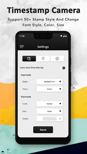 Settings here you can done by your preferences, you can change font, time-stamp position, photo name, change it easily.