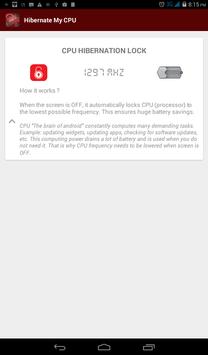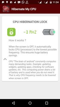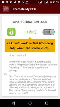 When the screen is OFF, it automatically locks CPU processor to lowest possible frequency. This ensures huge battery savings.