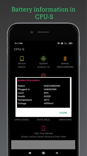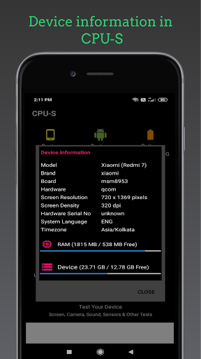 CPU-S is a hardware specification app for Android with detailed information about your smartphone including: