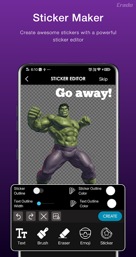 Create awesome stickers with a powerful sticker editor for WhatsApp by removing the background and adding texts, emojis, stickers, and so forth