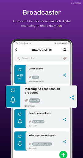 A powerful tool for social media & digital marketing to share daily ads. Organize media files and WhatsApp contacts/groups to share multiple media files simultaneously without any hassle. Experience the power of marketing tools built especially for WhatsApp.