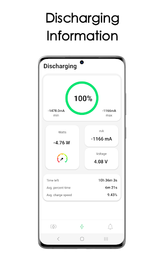 Also get relevant information about battery discharging. Estimate time for a full charge, or know the time when your phone will run out of battery with this simple app