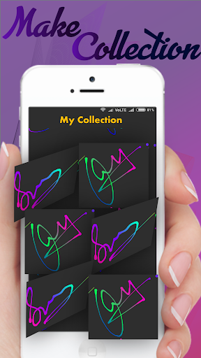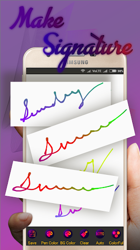 Want to create collection of signatures? Looking for signature maker app? Then this app is for you. With the app you can make signatures, create signature collection and save them for later use purpose. Also you can create multiple colored signatures with multi color backgrounds.