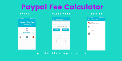 This PayPal fees calculator app is developed for all type of PayPal users to calculate fee with tax. PayPal Calculator used to calculate all countries fees like calculate PayPal uk fee.
