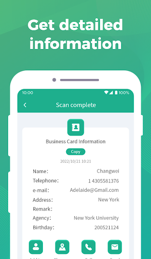 • Scan QR code, URL, business card, information, contact, WiFi, location, etc.