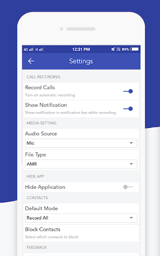 Auto Call Recorder App Records incoming/outgoing phone calls in crystal clear sound quality. Contacts Backup,Password Protection are some other key features of the the app which make the app different from other call recorder.