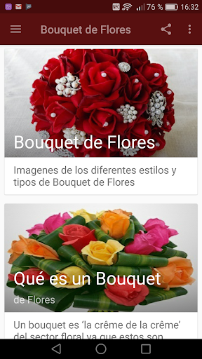 En esta aplicación encontrarás los bouquets más utilizados en las celebraciones y los tipos de bouquets que hay en función de su forma.