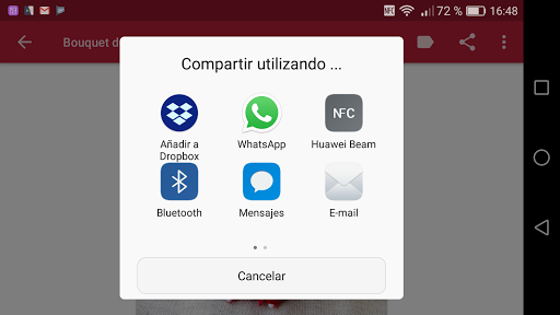 - Puedes compartir las imagenes por el medio que tengas instalado, facebook, whatsapp, email, etc.