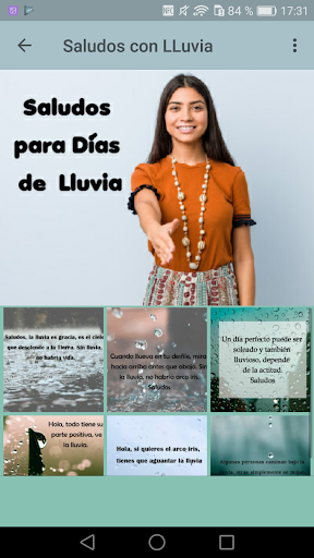 - Saludos con lluvia: saludos para los días de lluvia.