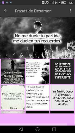 Descarga ya mismo esta app "Frases de Desamor y Amor" y desahogate enviando imagenes con frases de Desamor cortas, demuestra lo afectado que estás y lo mucho que te importa y afecta la situación por la que estás pasando. Expresa tu tristeza con estas Originales Palabras de Desamor, que te ayudaran a desahogarte.