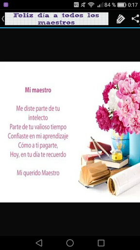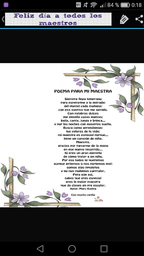 Descarga ya mismo esta aplicación "Poemas para el Día del Maestro" y disfruta enviando tarjetas del dia del profesor, ellos sabrán valorar estas imagenes para el día del maestro y reconocimiento con poemas y frases bonitas.
