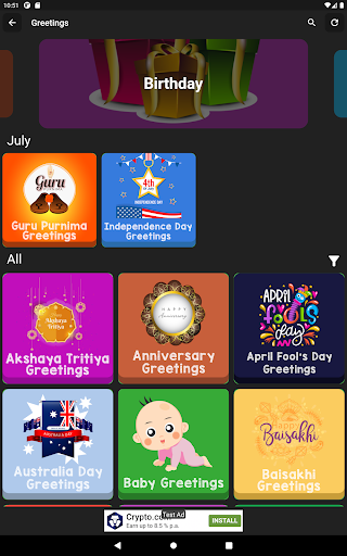 Make personalized greeting cards, birthday cards, and so many other e-cards for different occasions, designer pro to create your own designs or app resources, create photo collages with your pictures in the gallery, find full HD wallpapers for your home screen and lock screen, and even hundreds of unique, inspiring, and motivational quotes. This is what this greeting & birthday card maker app is all about.