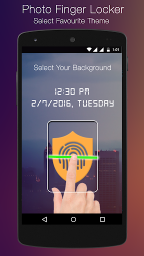 • Open Photo Finger Print Lock Screen app and set your Finger Print Lock and go to Select Theme and add Photo from the Gallery or take a Picture using Camera and set as Finger Print Lock Screen Background.