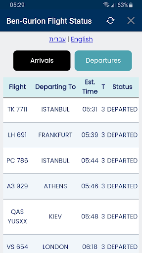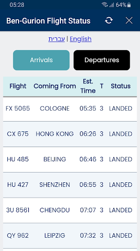 A simple app that lets you follow the Ben Gurion International Airport of Israel flight schedule status on Real time.