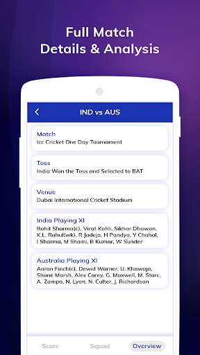 - Live & Past Match List with details Score