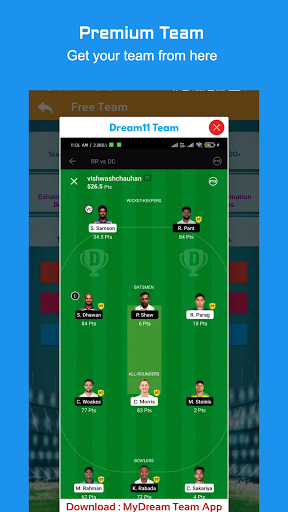 We also collect dream prediction from users and show along with our statistics, so users get an idea while creating their best dream cricket team on dream app and other fantasy cricket platforms. Also you can share your dream, team 11 my, circle 11 my teams. Also these suggestions, information can be used only free leagues on dream and other platforms and are not recommended for any premium leagues.
