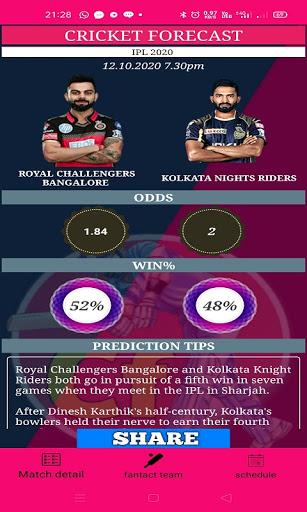 this is a cricket prediction app where all the cricket match prediction are available.