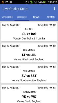 - Cricket Live Score & Schedule app you will get live updates on all the formats of Cricket like ODI, Natwest T20 Blast,CPL, Caribbean Twenty20, IPL 2018,