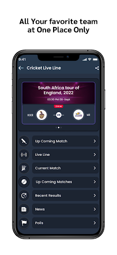 🏏 Alerts & notifications of live and upcoming matches.
