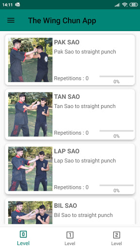 Wing Chun App contains the official techniques for all levels of Tranditional Wing Chun Kung Fu. Techniques are organized by forms and levels. There are three forms : Si Lim Tao, Chum Kil and Bil Jee. Each form has three levels with the appropriate techniques. Repetition is the mother of learning so this application allow you to record your training , you can set goals and monitor your progress. Wing Chun App allows you to have reference of all techniques in your mobile phone or tablet, so if you forget something you can find it. There are explanatory pictures for each technique with emphasis to key points.