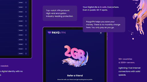 With 50 countries and 3200 servers, PaygVPN provides you lightning-fast internet connections.