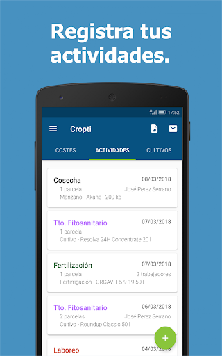 ✓ Registra tus actividades desde el móvil para tener el cuaderno de campo actualizado en todo momento.