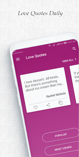 Love Quotes Daily gives you unique love quotes daily morning. Start your day by sending love quotes to your beloved person. This app helps you to love and to be loved around the people you live.