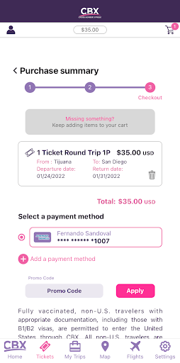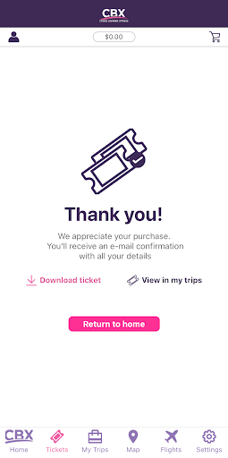 Make your crossing through CBX a touchless experience with this travel App. Purchase CBX tickets, reserve parking, add complimentary services, link your boarding pass, search for flight status, get exclusive offers, locate what you need using the interactive map and manage your travel checklist all from one place.