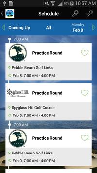The official app of the AT&T Pebble Beach Pro-Am, a PGA TOUR golf tournament held in Pebble Beach, California on February 8-14, 2016. Your on-course, spectator guide for background and logistical information, updated daily pairings, feeds for local weather, and tournament news. Push notifications (optional) will keep you updated throughout the event.