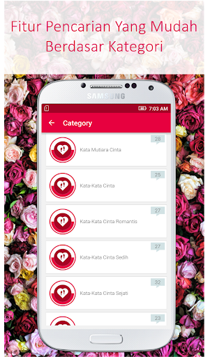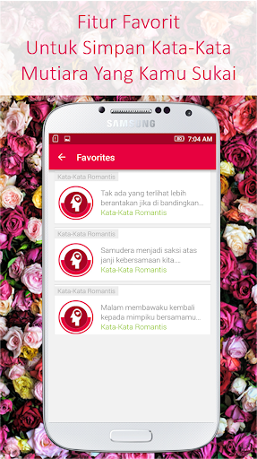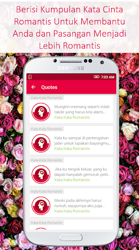 Fitur yang ada dalam aplikasi Kata Kata Romantis Indah yaitu: