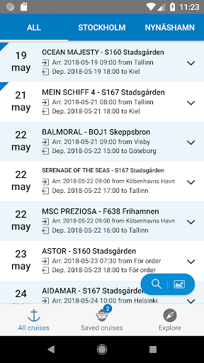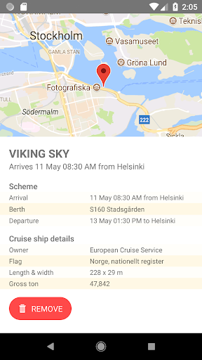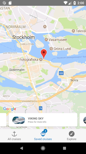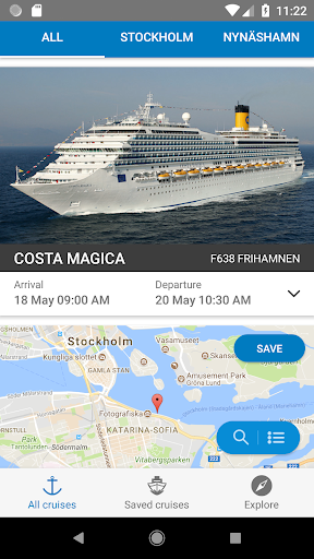 The Cruise Stockholm app shows the vessels in port, as well as those due to arrive into Stockholm and Nynäshamn. You can also see what berth the vessels occupy. Information is updated every five minutes.