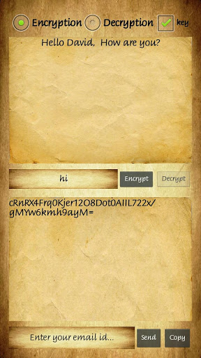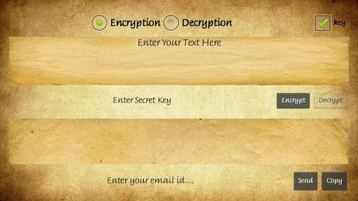 1) Key : key encryption helps to encrypt data using user defined key. This key is also sent through an email to recipient.