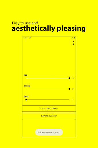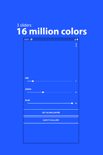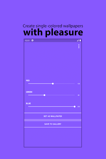 With Solid Color Wallpapers, you can simply drag sliders until you find the color of your liking and then set it as a wallpaper with a single touch. Hassle-free, easy to use and lightweight. You only wanted to set wallpapers, so you shouldn't be bothered with dozens of useless features and ads - that's why Solid Color Wallpapers exist. Also, the wallpaper generation process is all done locally on your device so you can use the app to it's fullest even when you're offline!