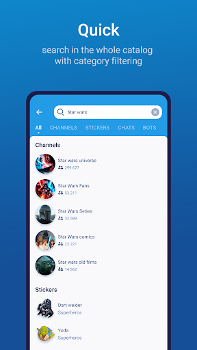 TgSurf is a Telegram world navigator. A huge catalog of channels, stickers, chats and bots. With TgSurf you can quickly and easily find the content you are interested in. There is everything you need for this: