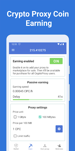Coin Mining - Mobile Proxy - an application for making money on the Internet. Users connect to a decentralized network. For Internet activity, CPC tokens are credited to the account.