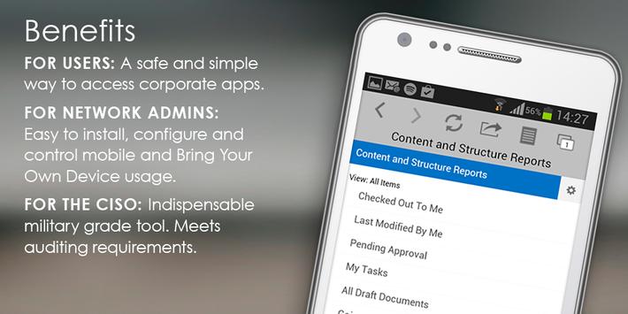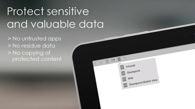 Mobile Access Protect [MAP] is the simplest and safest way to access corporate applications, including Microsoft SharePoint, OWA and SAP. This secure app for Android is specifically designed to allow users to access sensitive corporate information and web-applications, while preventing any data loss. By managing the data and not the device MAP effectively addresses the mobile security challenges introduced by BYOD.