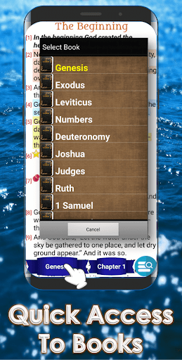 The Search menu will allow you to place a word in a text field and search the entire bible, in the old or new testament. If you specify the search range it may take less time to find matches, but if you select the whole bible it will take longer to Find the results.
