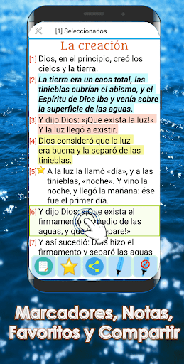 Możesz wybrać jedną lub więcej wersetów z rozdziału i znaku jako ulubionego Możesz także udostępniać znajomym w wersjach w różnych sieciach społecznościowych.