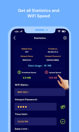 Smart Hotspot Manager will get you all the information of all connected devices. And also you can check your WiFi speed - download speed & upload speed. Get detailed statistics of devices connected your WiFi or Hotspot.