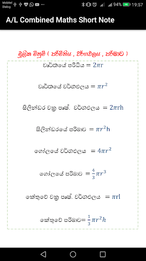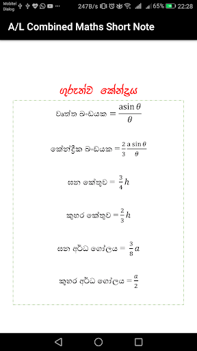 This short note android app gives you a complete cover about all lessons formulas from Pure Mathematics and Applied Mathematics
