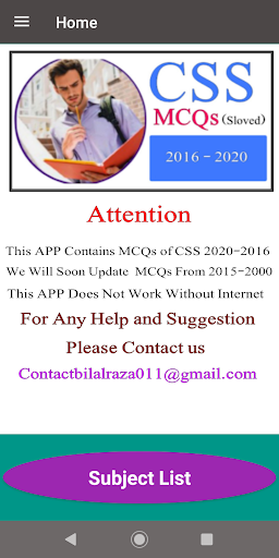 📚 CSS MCQs App is one if the best to be ready early for your exams. This handy app is great for CSS students to get ultimate access to nearly all well-structured MCQs for number of subjects. Using CSS MCQs Application you can learn anytime anywhere. Now you do not need to sit at specific place and read by using CSS MCQs you can prepare your exams in number of subjects in very short time.