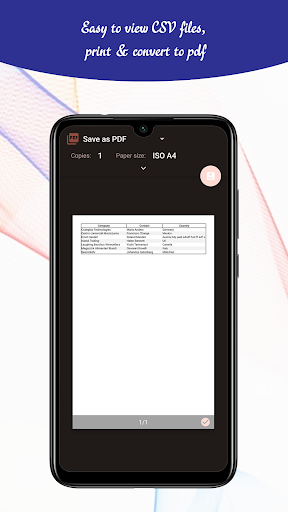 CSV file edit & Viewer app has inbuild own pdf viewer tool so while you trying to convert to a pdf file from your selected CSV file this pdf viewer will show your content preview then you can save it to your mobile phone or print it through your wifi or Bluetooth printer device.