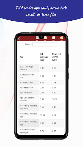 CSV file Create Edit & Viewer app is not only used to just view the csv file data this can also be used to convert csv to word files, convert csv to pdf files, and convert table view to csv files.