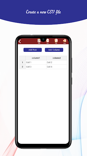 This app is used to make your CSV file in the easiest way which means simple tools to make your columns and rows, then just click on the newly created cell and type your own texts.