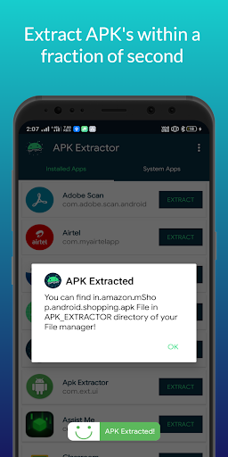APK Extractor will extract APK that are installed on your android device and copies them to your Storage.