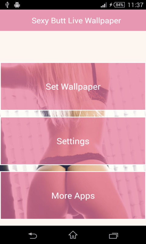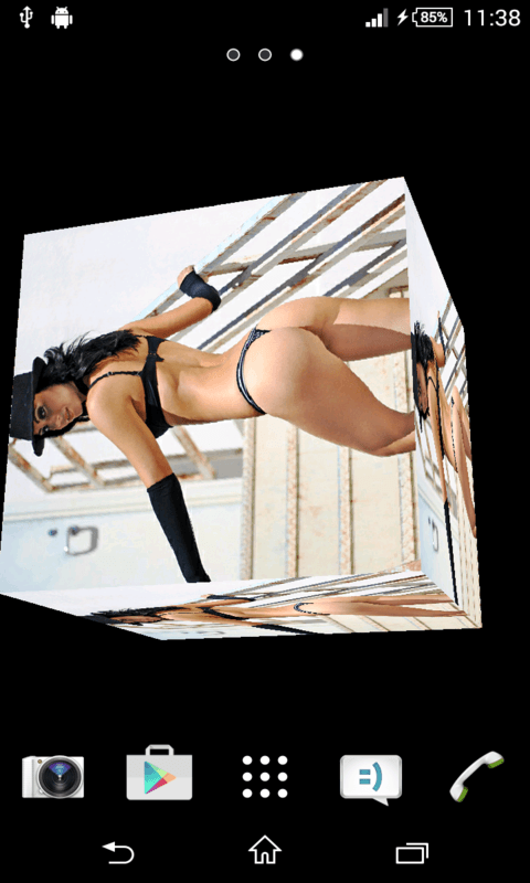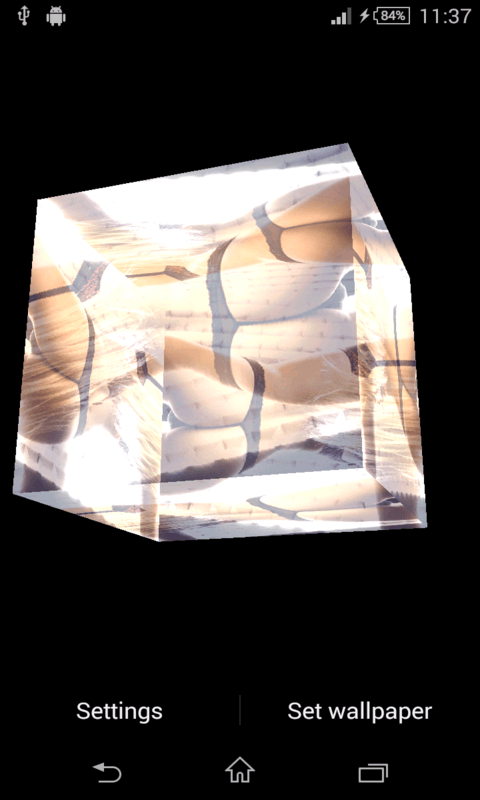 Sexy Butt Live Wallpaper features a rotating 3D photo cube showing the sexy and hot pictures from selected image. This contains many HD quality hot girl pics . Select your favorite sexy image from setting /change image to display in rotating cube. This is only for android and totally free. You can rotate Sexy Butt LWP by swiping through your home screens - scene will change its rotation according to touches. Features- ----------------------------- This contains many HD quality Hot and sexy pics. Manually change the cube images by the click change image. Increase or decrease brightness, if transparent Enabled. Adjust the size of the 3D cube by click of Cube Size. Many different hot Images choice are available. DISCLAIMER--- Its a free android app thus it contains some ads, but it doesn't contain any push ads or home screen ads