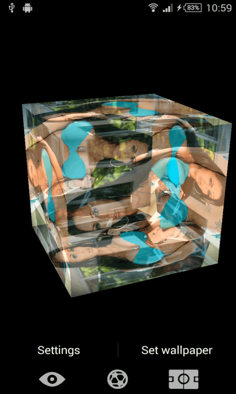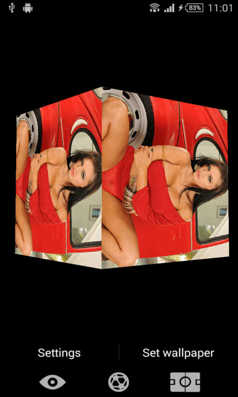 Jenna Presley Live Wallpaper features a rotating 3D photo cube showing the sexy and hot pictures from selected image. This contains many HD quality hot girl pics . Select your favorite sexy image from setting /change image to display in rotating cube. This is only for android and totally free. You can rotate Jenna Presley LWP by swiping through your home screens - scene will change its rotation according to touches. Features- ----------------------------- This contains many HD quality Hot and sexy pics. Manually change the cube images by the click change image. Increase or decrease brightness, if transparent Enabled. Adjust the size of the 3D cube by click of Cube Size. Many different hot Images choice are available. DISCLAIMER--- Its a free android app thus it contains some ads, but it doesn't contain any push ads or home screen ads