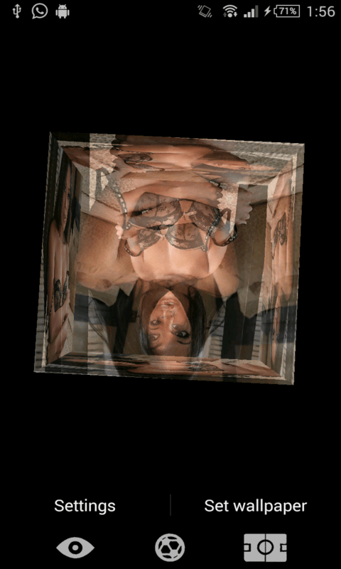 Kaylani Lei Live Wallpaper features a rotating 3D photo cube showing the sexy and hot pictures from selected image. This contains many HD quality hot girl pics . Select your favorite sexy image from setting /change image to display in rotating cube. This is only for android and totally free. You can rotate Kaylani Lei LWP by swiping through your home screens - scene will change its rotation according to touches. Features- ----------------------------- This contains many HD quality Hot and sexy pics. Manually change the cube images by the click change image. Increase or decrease brightness, if transparent Enabled. Adjust the size of the 3D cube by click of Cube Size. Many different hot Images choice are available. DISCLAIMER--- Its a free android app thus it contains some ads, but it doesn't contain any push ads or home screen ads