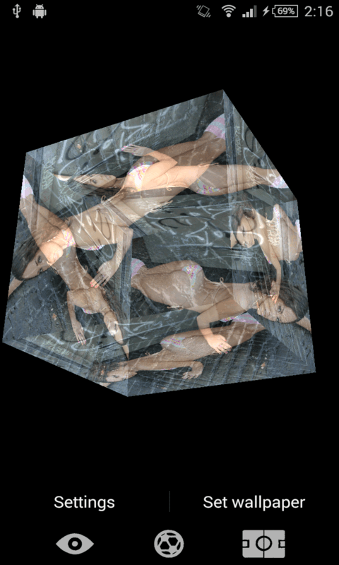 Kristina Rose Live Wallpaper features a rotating 3D photo cube showing the sexy and hot pictures from selected image. This contains many HD quality hot girl pics . Select your favorite sexy image from setting /change image to display in rotating cube. This is only for android and totally free. You can rotate Kristina Rose LWP by swiping through your home screens - scene will change its rotation according to touches. Features- ----------------------------- This contains many HD quality Hot and sexy pics. Manually change the cube images by the click change image. Increase or decrease brightness, if transparent Enabled. Adjust the size of the 3D cube by click of Cube Size. Many different hot Images choice are available. DISCLAIMER--- Its a free android app thus it contains some ads, but it doesn't contain any push ads or home screen ads