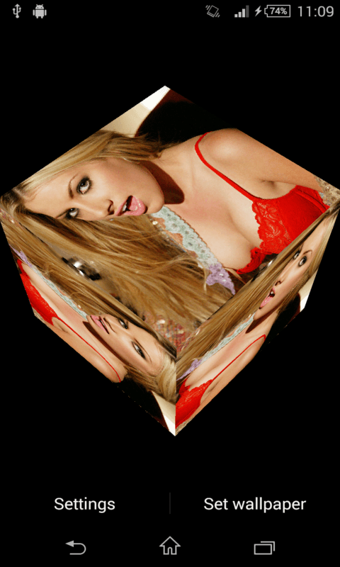 Teagan Presley Live Wallpaper features a rotating 3D photo cube showing the sexy and hot pictures from selected image. This contains many HD quality hot girl pics . Select your favorite sexy image from setting /change image to display in rotating cube. This is only for android and totally free. You can rotate Teagan Presley LWP by swiping through your home screens - scene will change its rotation according to touches. Features- ----------------------------- This contains many HD quality Hot and sexy pics. Manually change the cube images by the click change image. Increase or decrease brightness, if transparent Enabled. Adjust the size of the 3D cube by click of Cube Size. Many different hot Images choice are available. DISCLAIMER--- Its a free android app thus it contains some ads, but it doesn't contain any push ads or home screen ads
